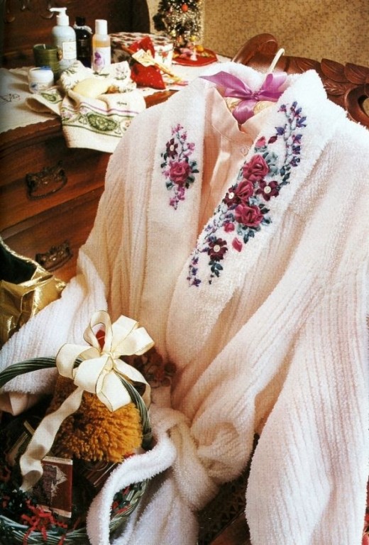 Cross stitching on apparel may seem a bit more challenging. However, BH&G gives excellent directions. Before you know it, you will be lounging in a beautiful robe yourself cross stitching your next project. Perhaps, you will give that one as a gift.