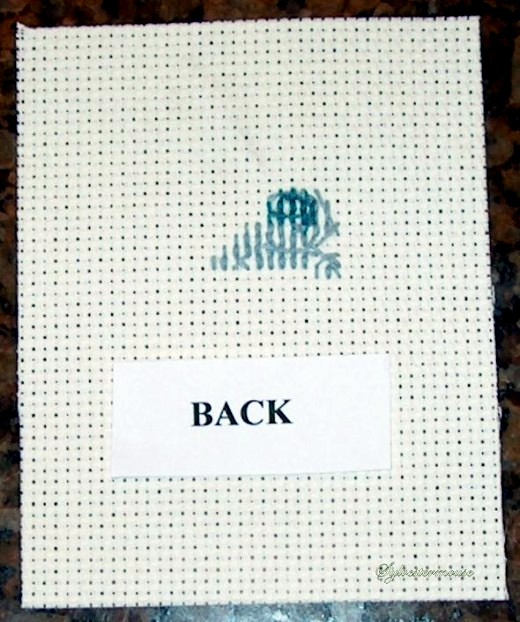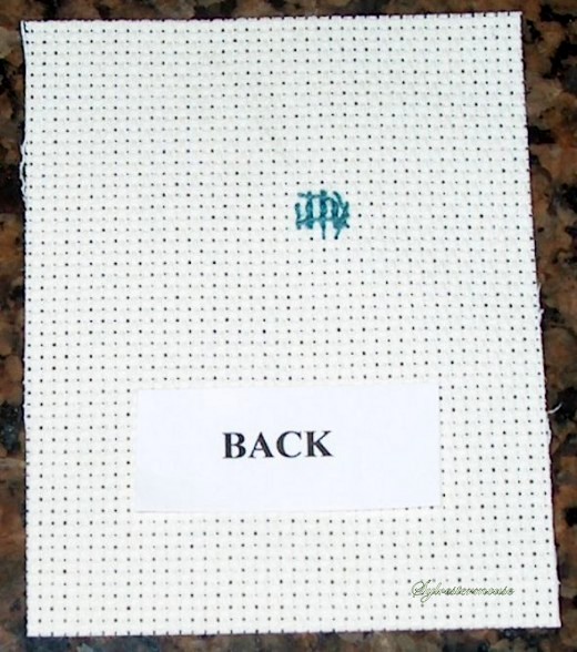 Step 3: From the back of your fabric, start the second section of your X by first inserting your needle in the hole directly below your step 2 stitch.